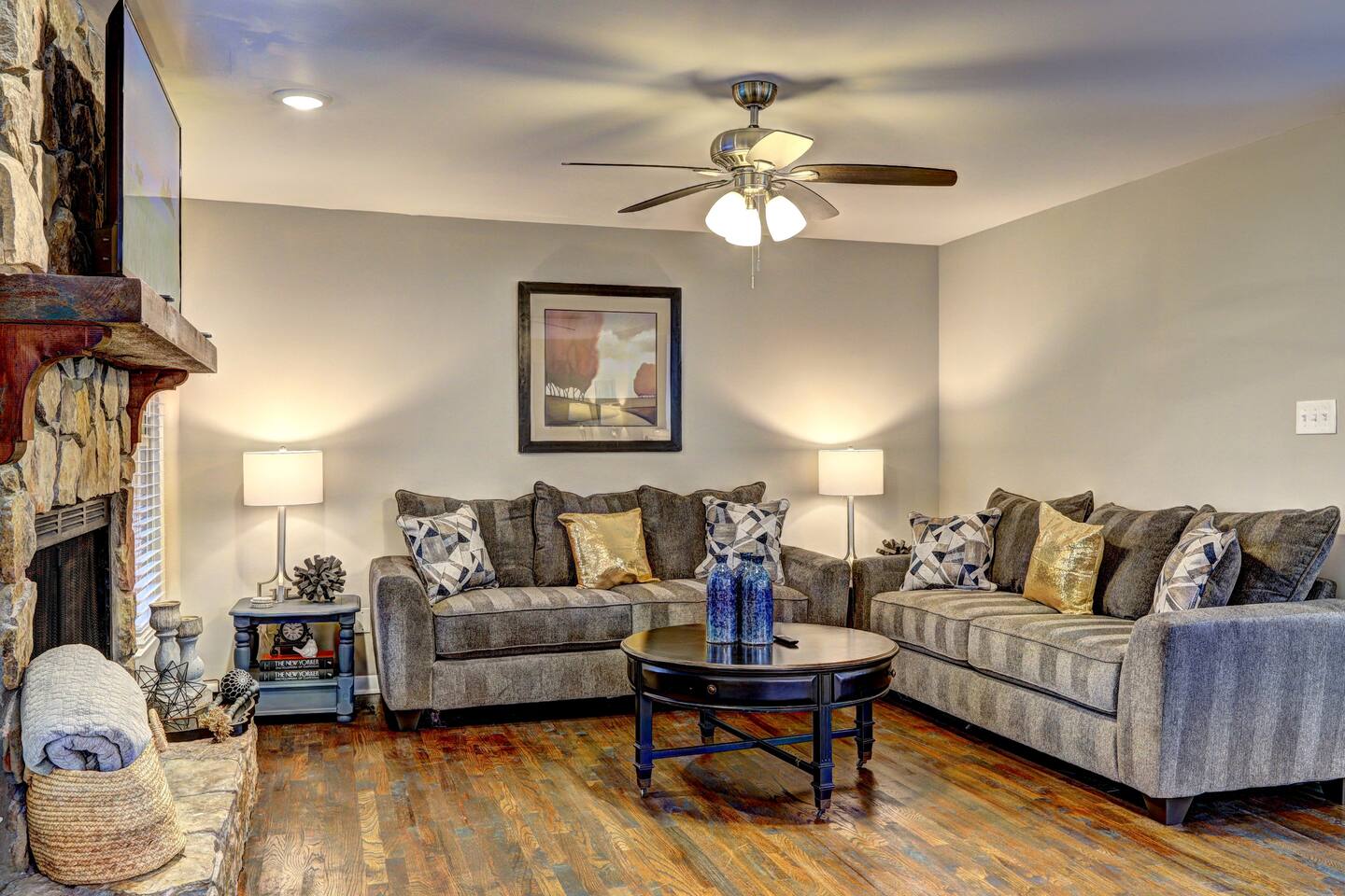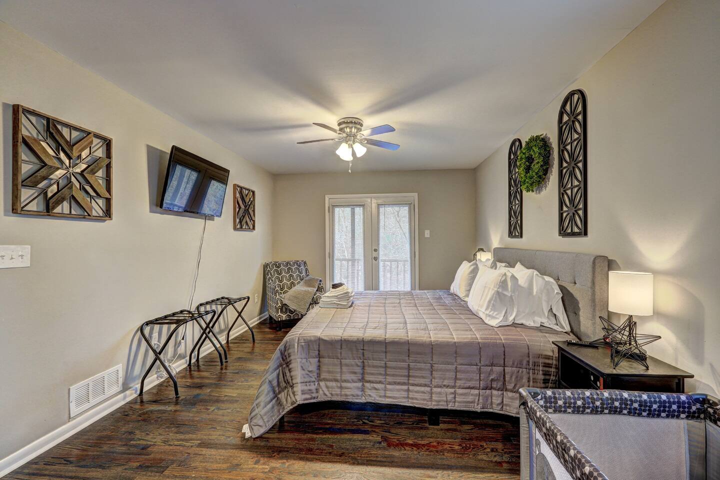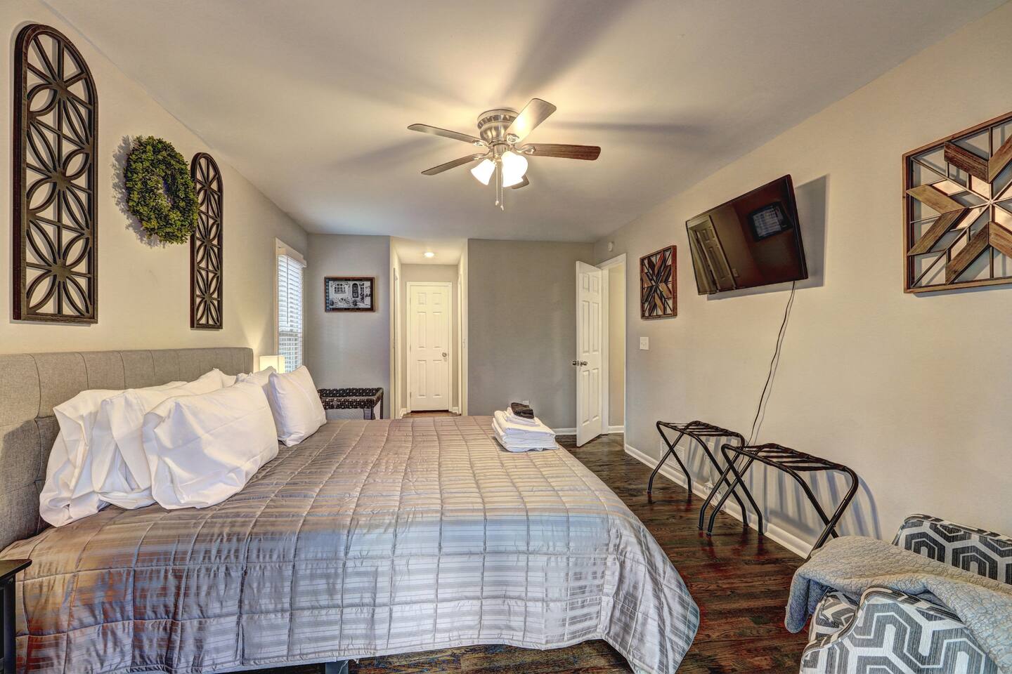 *PLEASE READ* This home is on a hill and has a steep driveway. Respectfully, please make sure that you are aware and please do not book this home if you are not willing to accommodate the driveway. There is driveway parking available for up to 4 cars. Please read house rules before booking. This home has a strict NO PARTIES rule. We do have security cameras on the outside of our homes. It is one of our top priorities that we provide a safe and clean space for all of our guests, as well as a respectable and well maintained home for our neighbors. We need to be good neighbors, just as we need to be good hosts. Important Notes: 🚫 No Parties Allowed: Strict policy to respect neighbors & maintain a peaceful environment. 📹 Security Cameras: Exterior cameras for safety and monitoring. 📶 Reliable WiFi: Ideal for work, streaming, and staying connected. 👥 Minimum Age Requirement: Primary renter must be at least 25 years old. 🐾 Pet Policy: Pets must be approved before booking, leashed outside, and crated when left alone (pet fee applies).🚗 Steep Driveway: Be aware that this home sits on a hill; please consider this before booking. The owner of the property uses the garages, both attached and detached, to store furniture and other items. The garages are NOT part of the rental listing and will not be available to guests as part of the house. Please do not enter the detached building on the property. It is not part of the rental.