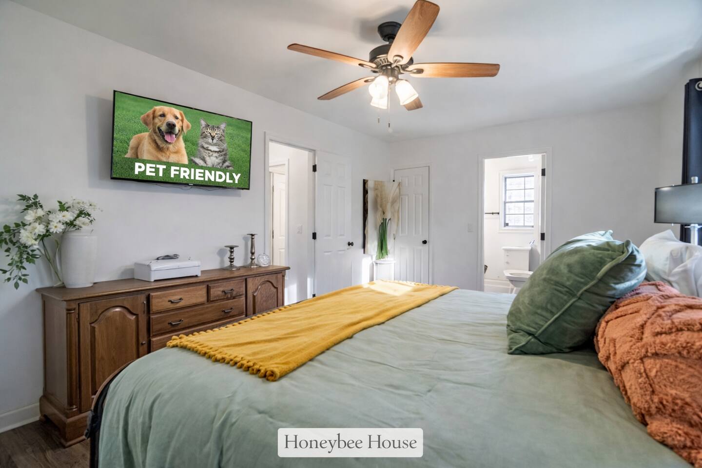 Please read house rules before booking. This home has a strict NO PARTIES rule. We do have security cameras on the outside of our homes. It is one of our top priorities that we provide a safe and clean space for all of our guests, as well as a respectable and well maintained home for our neighbors. We need to be good neighbors, just as we need to be good hosts. Important Notes: 🚫 No Parties Allowed: Strict policy to respect neighbors & maintain a safe environment. 📹 Security Cameras: Exterior cameras in place for security purposes. 📶 Reliable WiFi: Ideal for remote work, streaming, and staying connected. 👥 Minimum Age Requirement: Primary renter must be at least 25 years old. 🐾 Pet Policy: Pets must be approved before booking, leashed outside at all times, and crated if left alone (pet fee applies). GARAGE: The owner of the property uses the garage of the home to store furniture and other items for their business. The garage is NOT part of the rental listing and will NOT be available to guests as part of the house. PET POLICY: Please reach out prior to booking for pet approval. All approved pets MUST be on a leash while outside AT ALL TIMES and crated while left home alone. Pet waste is to be promptly picked up and disposed of. Pet fee will apply. Potential guests with sensitivities or allergies should please consider that we are a pet friendly home prior to booking. 📚