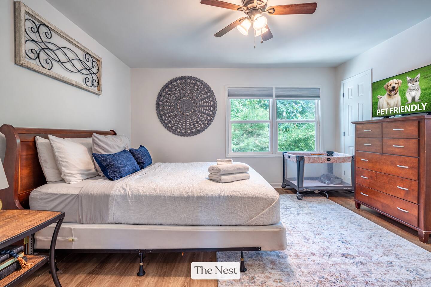 FIFA WORLD CUP - WELCOME TO ATL! This home is located 16.3 miles from Mercedes Benz stadium and 1 mile from the Atlanta United training Facility on Franklin Gateway! This town home is owned and operated by experienced Hosts. Why You’ll Love This Home: ✔ Spacious & Stylish: Thoughtfully designed open-concept layout with modern furnishings. ✔ Fully Equipped Kitchen: Stocked with cookware, coffee maker, and all essentials. ✔ Smart TVs in Every Room: Stream your favorite shows in the living room and both bedrooms. ✔ Dedicated Workspace: Ideal for remote workers or students needing a quiet area. ✔ Fenced Backyard & Private Patio: Enjoy fresh air or let the pups out. ✔ Pet-Friendly: Your furry friends are welcome (pet fee applies, approval required). ✔ Washer & Dryer: Available for guest use during your stay. ✔ Free WiFi & Streaming Services: Stay connected with high-speed internet. ✔ Private Parking: Dedicated parking pad for 2 vehicles. ✔ Keyless Entry: Secure and seamless self-check-in experience. Sleeping Arrangements: 🛏 Bedroom 1: Queen bed, Smart TV, private en-suite bathroom, dedicated workspace. 🛏 Bedroom 2: Queen bed, Smart TV, private en-suite bathroom. 🛋 Living Room: Pull-out sofa bed for additional guests. Prime Location – Explore Marietta & Beyond! ⚽ Atlanta United Soccer HQ (1 mile, 5 min) – Perfect for soccer fans and sports lovers. 🎓 Kennesaw State University (Marietta Campus) (1.4 miles, 5 min) – Great for visiting students and faculty. ✈ Dobbins Air Force Base (2.7 miles, 10 min) – Convenient for military personnel and families. ⚾ Truist Park (Braves Stadium) (5 miles, 12 min) – Home to the Atlanta Braves and The Battery entertainment district. 🌊 Georgia Aquarium & World of Coca-Cola (15.4 miles, 25 min) – Top Atlanta attractions .🏟 Mercedes-Benz Stadium (16.3 miles, 30 min) – Catch an NFL game or concert. 🐾 Zoo Atlanta (18 miles, 35 min) – Family-friendly fun with exotic animals. 🛍 Town Center at Cobb (8 miles, 15 min) – Premier shopping and dining destination. 🚗 Easy Highway Access: Quick access to I-75, I-285, Hwy 120, and Hwy 41. Book Your Stay Today! Whether you're in town for a family visit, work trip, or weekend escape, The Nest offers the perfect blend of modern comfort, outdoor relaxation, and easy access to Marietta’s top attractions. Secure your dates now and experience the best of North Georgia!