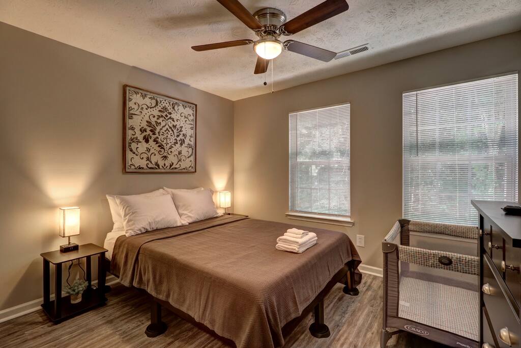 Why You’ll Love This Home: ✔ Prime Location: Only 10 minutes from the ATL Airport, with easy access to Downtown & Midtown Atlanta. ✔ Open Concept Living: Spacious living area with a pull-out couch for additional sleeping space. ✔ Fully Equipped Kitchen: Prepare meals with ease – includes cookware, appliances, and essentials. ✔ Smart TVs & High-Speed WiFi: Stream your favorite shows and stay connected. ✔ Private Bedrooms: Each upstairs bedroom features a queen-size bed and Smart TV. ✔ Laundry Convenience: Washer & dryer on-site for guest use. ✔ Privacy-Fenced Backyard Patio: Enjoy a peaceful outdoor space for morning coffee or relaxing evenings. ✔ Pet-Friendly: Bring your furry friends along (pet approval & fee required). ✔ Keyless Entry: Hassle-free check-in with a keypad entry system. Sleeping Arrangements: 🛏 Bedroom 1 (Primary Suite): Queen bed, Smart TV, en-suite private bathroom. 🛏 Bedroom 2: Queen bed, Smart TV, access to a full hallway bathroom. 🛋 Living Room: Pull-out sofa bed, Smart TV. Prime Location – Explore Riverdale & Beyond! ✈️ Hartsfield-Jackson Atlanta International Airport (6 miles, 10 min) – One of the world’s busiest airports, just minutes away. 🐠 Georgia Aquarium (15 miles, 25 min) – One of the largest aquariums in the world. 🏟 Mercedes-Benz Stadium (14 miles, 20 min) – Home to the Falcons, United FC, and major concerts. 🦁 Zoo Atlanta (13 miles, 20 min) – Great for family-friendly fun. 🥤 World of Coca-Cola (15 miles, 25 min) – Discover the history of this iconic beverage. 🎭 Fox Theatre (16 miles, 30 min) – Historic venue for live shows and Broadway performances. 🏞 Piedmont Park (16 miles, 30 min) – Atlanta’s premier outdoor space for walking, jogging, and events. 🛍 Camp Creek Marketplace (8 miles, 15 min) – Shopping, dining, and entertainment all in one place. 🍽 Downtown & Midtown Atlanta (15 miles, 25 min) – Fine dining, nightlife, and cultural attractions. Book Your Stay Today! Whether you're traveling for business, a family visit, or a weekend getaway, The Crash Pad offers a modern, comfortable, and convenient stay near Atlanta’s top attractions. Secure your dates now and experience the best of Riverdale & ATL! ✨ Extended Stay Cleaning Notice ✨ To maintain a consistently clean and comfortable environment, a $200 mid-stay cleaning fee applies to reservations longer than 7 nights. This service includes fresh linens, restocked essentials, and a full reset to keep your space in top shape for the rest of your stay. Details will be confirmed after booking based on length of stay and number of guests.