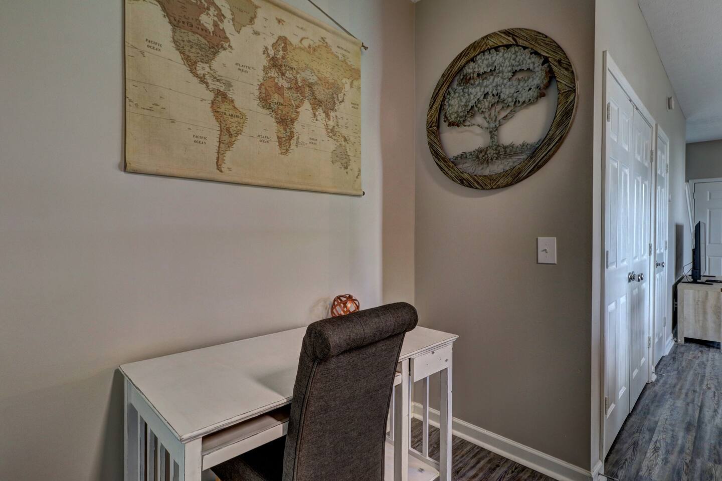 The Crash Pad is a beautifully decorated 2-bedroom, 2-bath townhome that accommodates up to 6 guests, making it an ideal spot for travelers, business professionals, and families alike. Situated just 10 minutes from Hartsfield-Jackson Atlanta International Airport, this home offers a fantastic alternative to a hotel stay with a fully stocked kitchen, private fenced patio, and modern amenities. Whether you're in town for work, a getaway, or an extended stay, this pet-friendly home has everything!