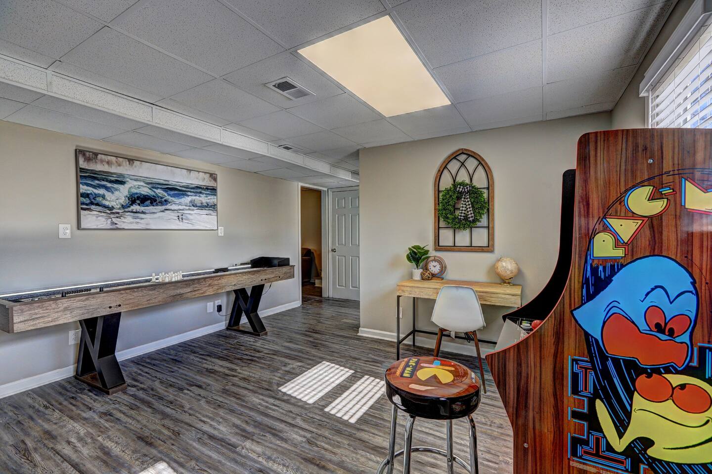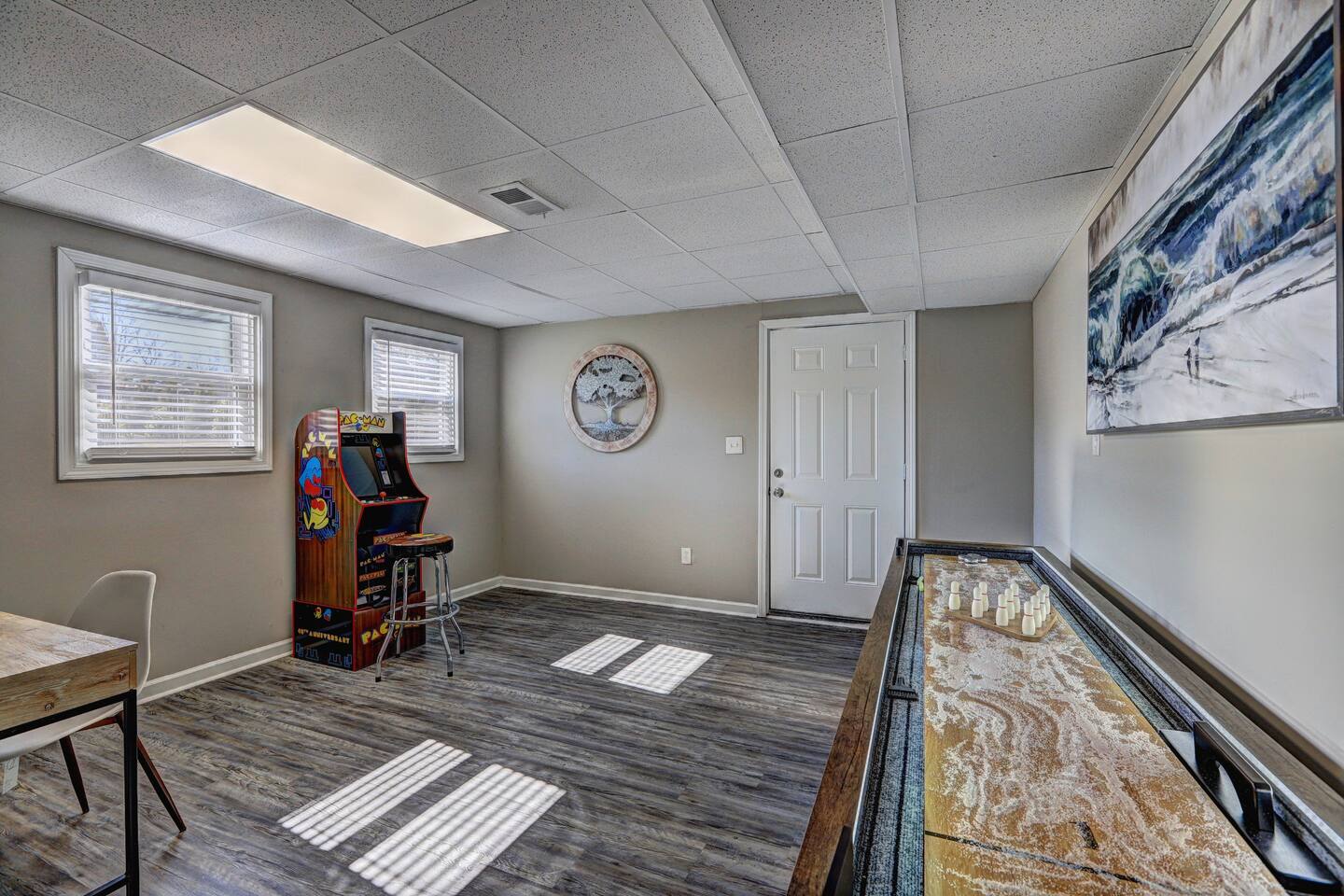 Varners Station is a great home that is convenient to major highways, shopping, and food. Why You’ll Love This Home: ✔ Spacious & Modern: Recently updated with stylish decor and thoughtful touches. ✔ Entertainment Spaces: Enjoy a Pac-Man arcade game, shuffleboard, and a cozy four-seasons room. ✔ Fully Equipped Kitchen: Prepare home-cooked meals with ease. ✔ Smart TVs in Every Bedroom: Stay entertained with all your favorite streaming services. ✔ Dedicated Workspace: Perfect for business travelers or remote work. ✔ Pet-Friendly: Bring your furry friends (pet fee applies)! ✔ Private Backyard & Deck: A great space for relaxing and unwinding. ✔ Convenient Location: Close to shopping, dining, and entertainment in Smyrna & Atlanta. ✔ Fast WiFi & Free Parking: Stay connected and park with ease. Sleeping Arrangements: 🛏 Primary Bedroom: King bed, Smart TV, en suite bathroom, pack ‘n play available. 🛏 Bedroom 2: Queen bed, Smart TV. 🛏 Bedroom 3: Queen bed, Smart TV. 🛋 Living Room: Queen sleeper sofa for extra guests. Prime Location – Explore Smyrna & Atlanta! 🚴 Silver Comet Trail – 0.4 miles (2 min) – Perfect for biking, jogging, or scenic walks. 🛍 Publix, Kroger, & Dining Options – 1 mile (5 min) – Convenient grocery and restaurant access. 🏥 Wellstar Cobb Hospital – 2.2 miles (7 min) – Great for visiting medical professionals or family. 🎢 Six Flags Over Georgia – 6.5 miles (15 min) – A fun-filled amusement park for all ages. ⚾ Truist Park (Atlanta Braves Stadium) – 7.8 miles (20 min) – Catch a game or enjoy The Battery. 🌊 Six Flags White Water – 10.5 miles (20 min) – Exciting water slides and attractions. 🏟 Mercedes-Benz Stadium, GA Aquarium, & World of Coke – 14.2 miles (25 min) – Visit Atlanta’s top attractions. **There is a detached studio apartment on the property which shares a driveway with this home, Varners Station. The detached studio is NOT part of the rental listing and will not be available to guests as part of the house. There will be designated parking spaces for each unit. Guests must park in the designated spaces. GUEST PARKING FOR THIS RENTAL IS ON THE RIGHT SIDE OF THE BLACK TAPE, CLOSEST TO THE HOME. There is room for 2 cars comfortably, and a 3rd behind the first 2. PLEASE DO NOT use the studios parking spaces. If you need further clarification on where to park, please inquire with us directly** Book Your Stay Today! Whether you're in town for business, a weekend getaway, or an extended stay, Varners Station offers the perfect mix of comfort, convenience, and fun. Reserve your dates now and experience the best of Smyrna & Atlanta!