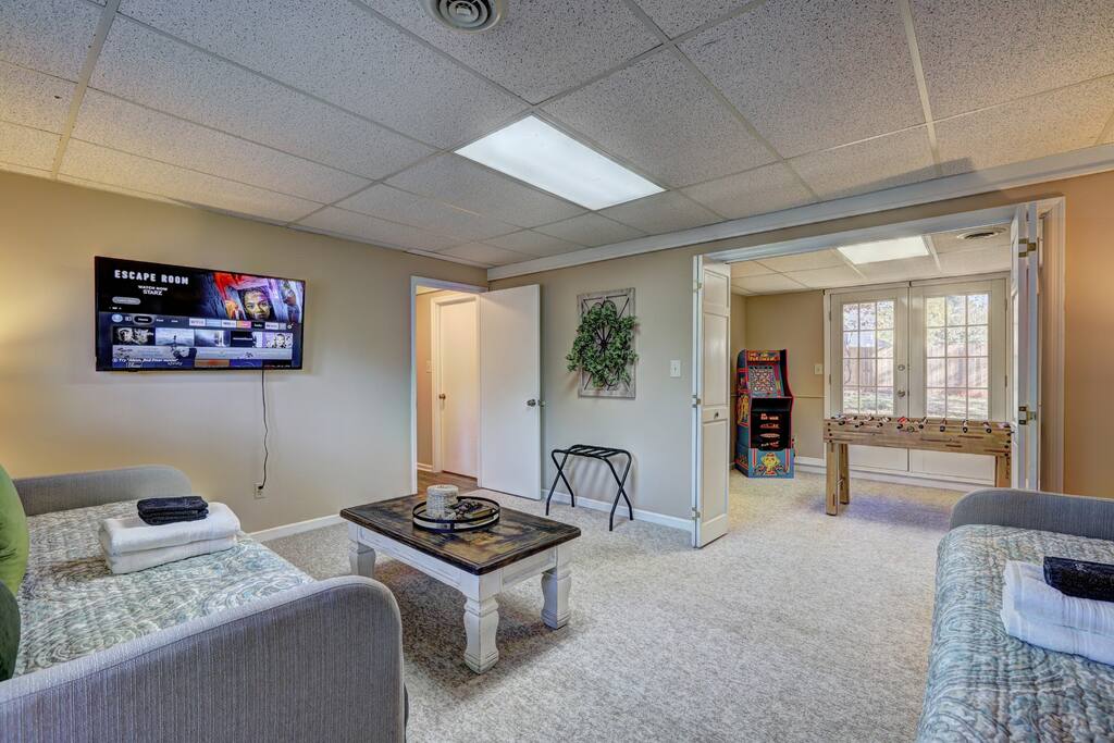 Welcome to The Station! Owned and operated by experienced Super Hosts, this home has everything you need for a relaxing and entertaining stay. Why You’ll Love This Home: ✔ Spacious Living Areas – Open-concept layout with comfortable seating, Smart TV, and access to the back deck. ✔ Fully Equipped Kitchen – Stocked with essential cookware, stainless steel appliances, and a high chair. ✔ Entertainment for All Ages – Board games, Pac-Man arcade game, and foosball table. ✔ Comfortable Sleeping Arrangements: 🛌Primary Bedroom: King-size bed, Smart TV, en-suite bath, and a crib. 🛌Second Bedroom: Queen-size bed, Smart TV. 🛌Terrace Level: Two trundle beds, each providing two twin-size foam mattresses. Living Room: Two sofa beds for additional sleeping options. ✔ Dedicated Workspace – Perfect for remote work or catching up on emails. ✔ Outdoor Space – Private fenced backyard with a back deck and sitting area. ✔ Laundry Room – Washer and dryer available for guest use. ✔ Free Off-Street Parking – Driveway fits up to 4 vehicles. ✔ Pet-Friendly – Inquire before booking (pet fee applies). Prime Location – Explore Woodstock & Beyond! 🚶♂️ 5 miles to Downtown Woodstock – Trendy restaurants, breweries, boutiques, and live entertainment. 🎓 11 miles to Kennesaw State University – Great for visiting students and faculty. ⚾ 20 miles to Truist Park (Braves Stadium) – Catch an Atlanta Braves game or explore The Battery. 🏙 33 miles to Atlanta’s Top Attractions – Visit the Georgia Aquarium, Mercedes-Benz Stadium, World of Coca-Cola, and more. Book Your Stay Today! Experience the best of Woodstock, GA, from the comfort of this stylish, fully-equipped home. Whether you’re here for a weekend getaway, family trip, or business travel, this home is your perfect retreat! Reserve your dates now! ✨ Extended Stay Cleaning Notice ✨ To maintain a consistently clean and comfortable environment, a $200 mid-stay cleaning fee applies to reservations longer than 7 nights. This service includes fresh linens, restocked essentials, and a full reset to keep your space in top shape for the rest of your stay. Details will be confirmed after booking based on length of stay and number of guests.